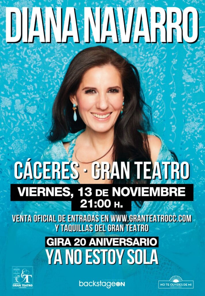 La malagueña Diana Navarro celebra dos décadas de trayectoria artística con su nuevo espectáculo "Ya no estoy sola", un evento que promete ser un homenaje a su carrera y a sus seguidores. El Gran Teatro de Cáceres acogerá este emotivo recital el viernes 13 de noviembre a las 21:00h, donde la cantante irá desgranando sus grandes éxitos junto a nuevas composiciones que reflejan su crecimiento y versatilidad. Con una mezcla de copla, flamenco y sonidos contemporáneos, Diana nos ofrece una experiencia única que no te querrás perder.